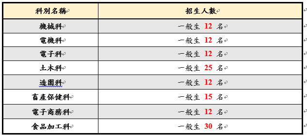 - 機械科、電子科、造園科、食品加工科、電子商務科不參採國中教育會考成績。