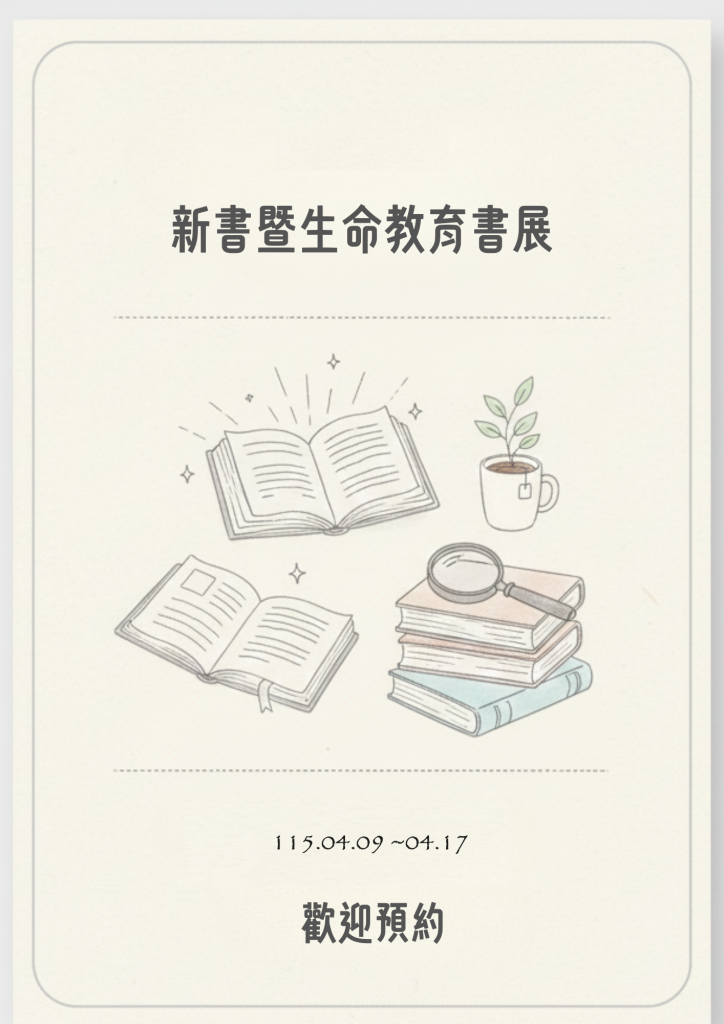Post category:圖書館公告 / 最新消息Post last modified:2026-04-09Post author:pmaitn004展期從4/9 至4/17止,歡迎師生預約借閱!115新書書展下載 Post Views: 13Tags: 圖書館, 新書書展Read more articles上一篇文章中學生小論文及閱讀心得寫作比賽榮譽榜