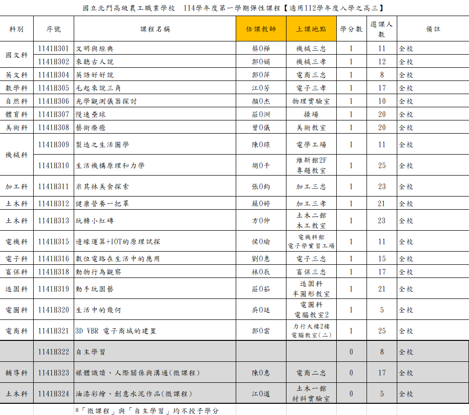 Post category:教務處公告 / 最新消息Post last modified:2025-09-24Post author:pmaitn044*若遇下雨天等天候不佳情形,戶外課程之授課老師可自行調整上課地點,但請務必確實掌控上課學生人數。 Post Views: 239